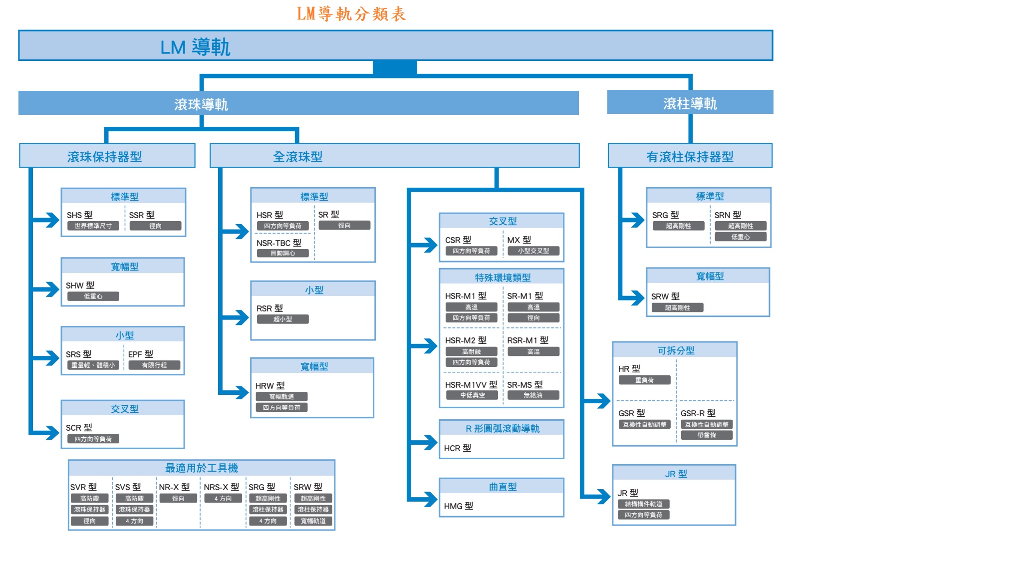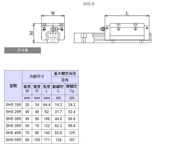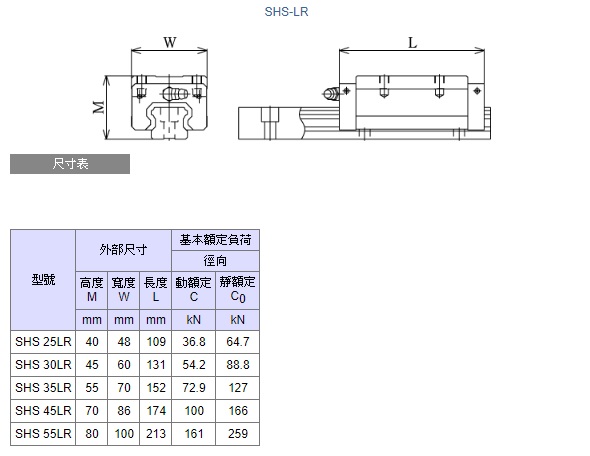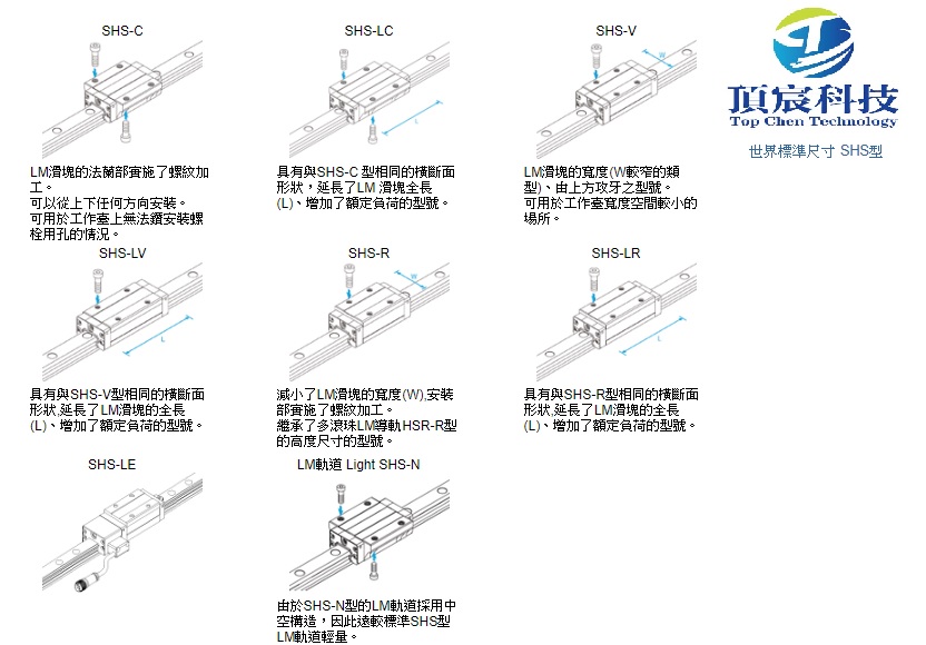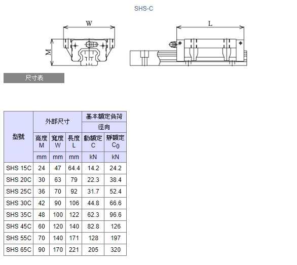 THK帶球保持器 LM 導軌SHS型 各球列按45°接觸角配置,因此可在任何姿勢下使用。 帶球保持器可消除滾珠的相互摩擦,並提供低噪音、好音質、長期免維護和優異的高回應等特性。 可於下載區找到規格手冊。